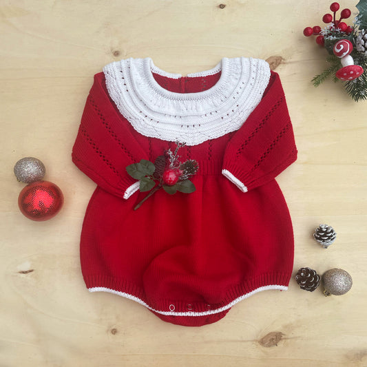 Red Knit Christmas Baby Girl Bubble Romper Long Sleeve, of Cotton Warm and Cozy
