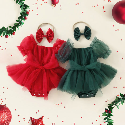 Baby Girl Christmas Dress, Red Tulle Tutu Romper for Toddler & Newborn